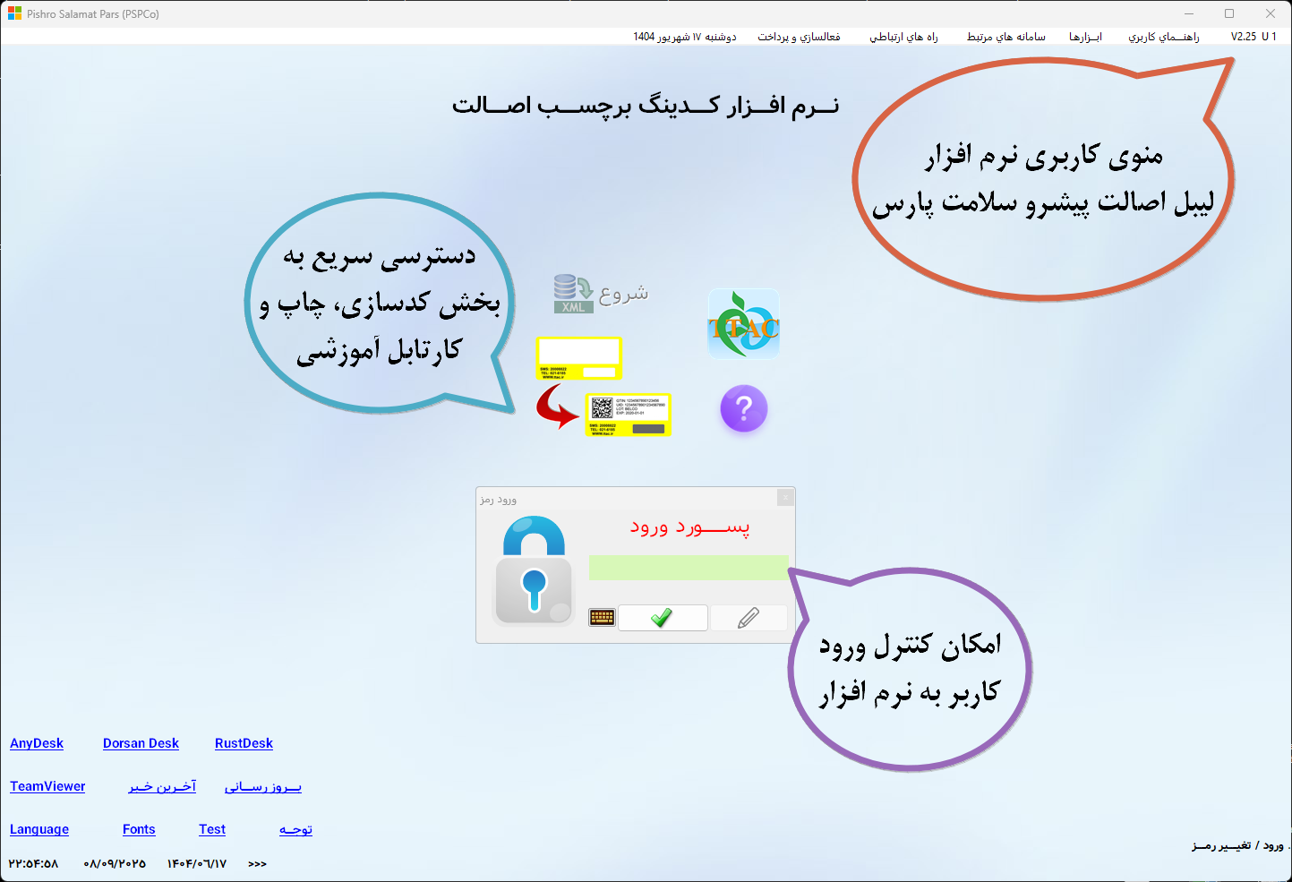 قابلیت تعریف رمز جهت ورود کاربر به نرم افزار