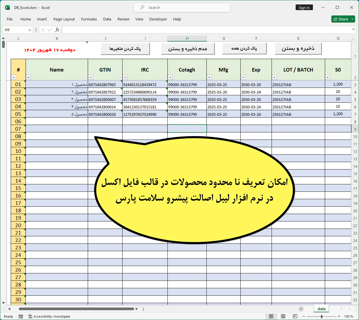 این اطلاعات شامل جی تی آی ان، آی آر سی، لات نامبر و … تعداد میشه. که خیلی راحت از طریق فایل اکسل این کار قابل انجام هستش.