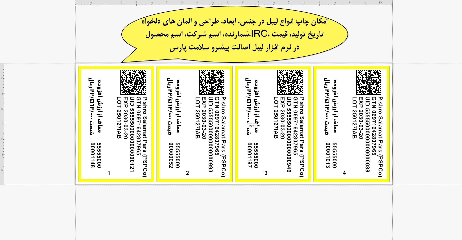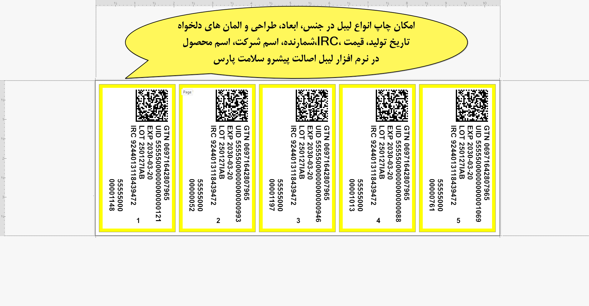 امکان چاپ و تعریف تمامی اطلاعات الزامی و اضافی روی لیبل اصالت به شرح زیر توسط این نرم افزار وجود دارد: